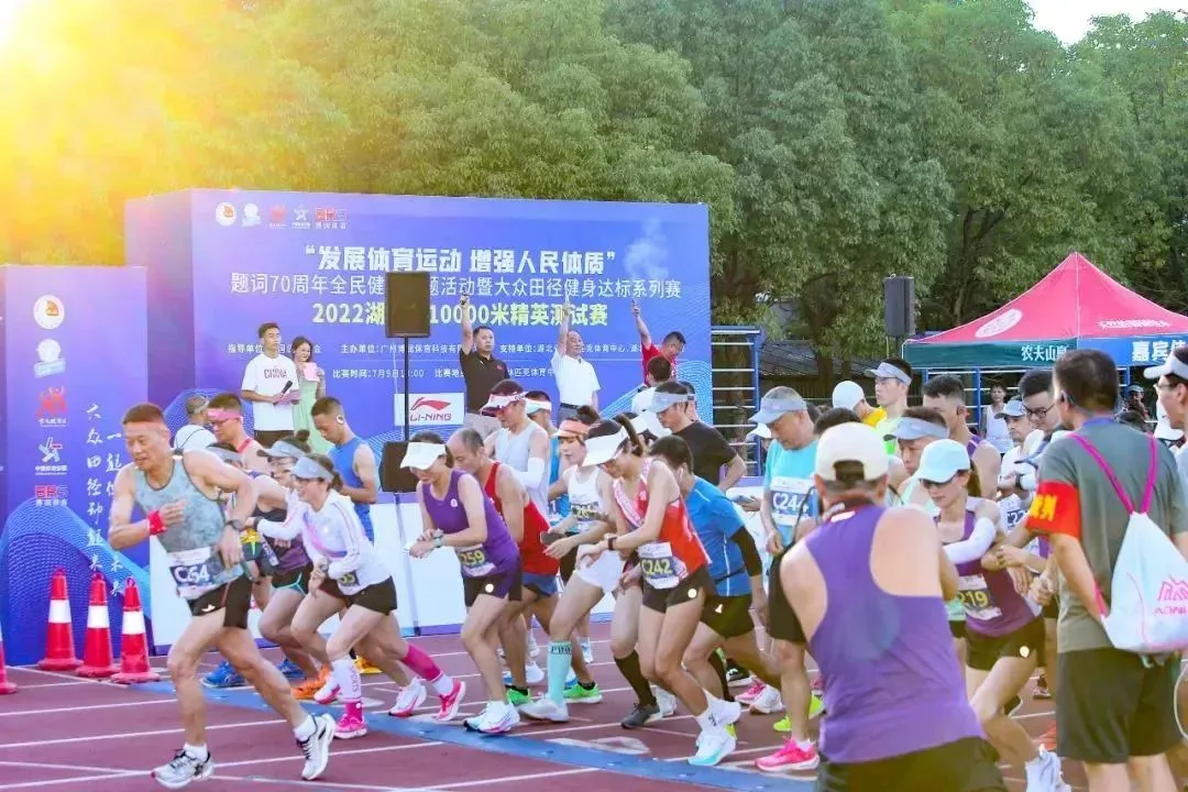 7月9日傍晚,“发展体育运动,增强人民体质”题词70周年全民健身主题活动暨大众田径健身达标系列赛暨2022湖北省10000米精英测试赛在湖北省奥林匹克体育中心正式开赛。来自湖北全省17个地市州的近200名精英选手参加了比赛。